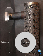 liitoskohtaan tiilihormeihin. Pellin halkaisija on 34 cm. |