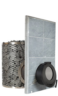 kivimassaan, joten kiuasta mitoitettaessa lasi- tai kivipinnoilla